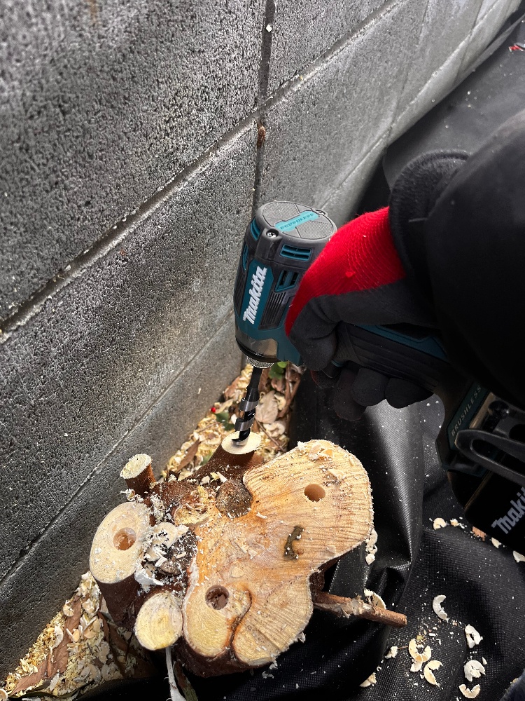 ドリルで穴を開ける作業を行いました。