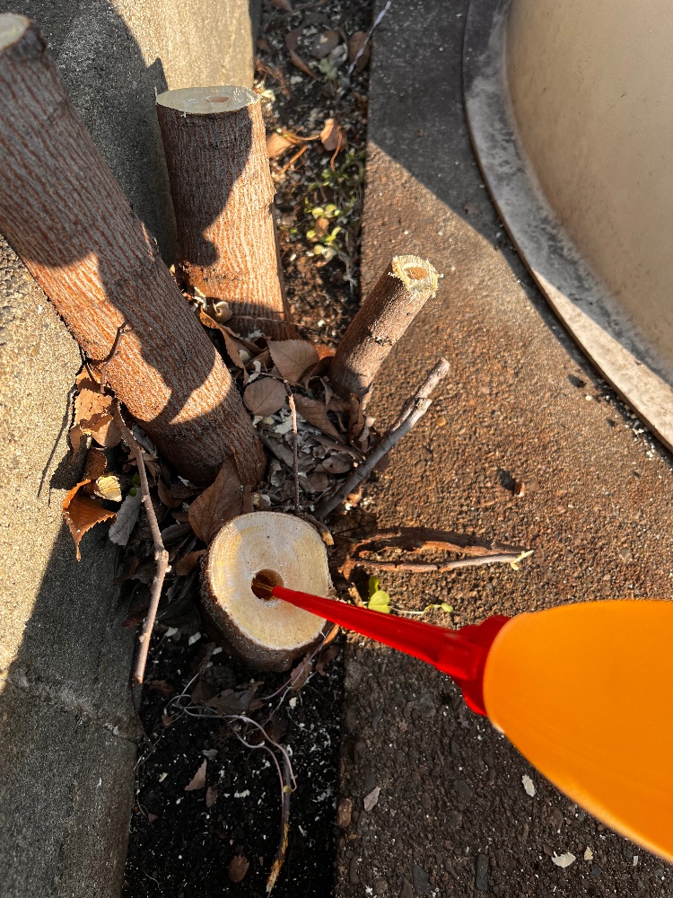 伐採後は切り株が残るため、再び生えてこないように切り株処理を行います。