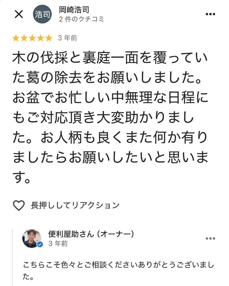 **「庭木伐採の事なら和歌山便利屋助さん」**