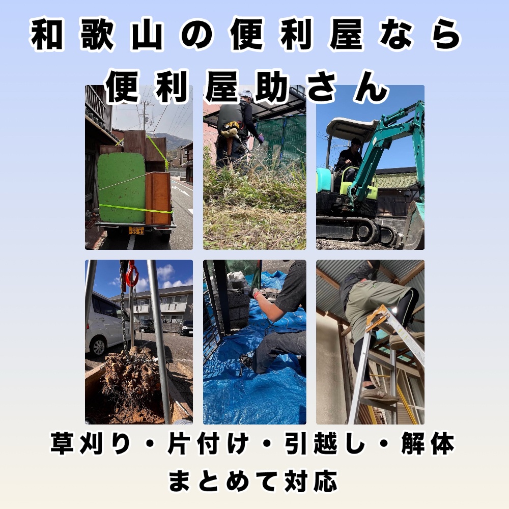 和歌山で草刈り・伐採・不用品回収・引越し・小規模解体をはじめ、家具組立・修理・各種お困りごとまで幅広く対応しています。