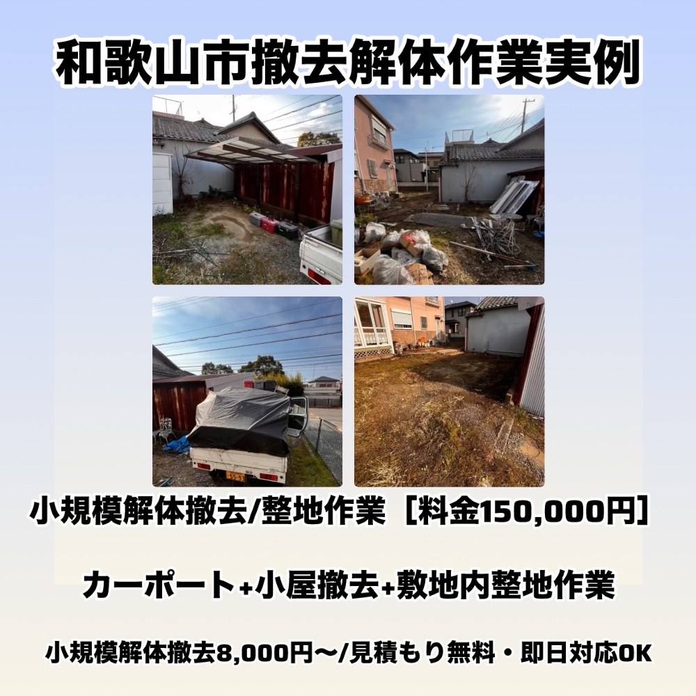 和歌山市にて、カーポート・小屋の解体撤去と敷地内の整地作業を行いました。