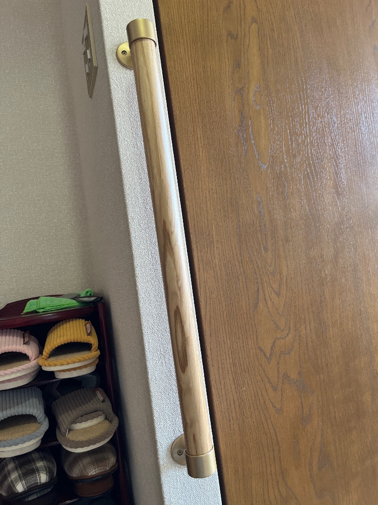 先日、以前お風呂場の手摺取り付けをさせていただいたお客様から、「玄関にも手摺を取り付けてほしい」とご依頼をいただきました。リピートでご依頼いただけて、本当に嬉しかったです!
