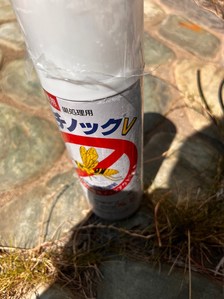 プロの現場で欠かせないのが、この**業務用スプレー「ハチノックV」**です。(写真1枚目)