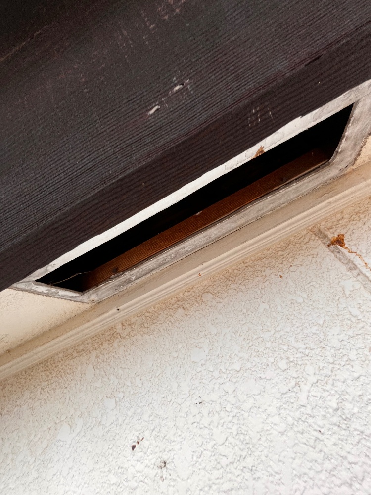 写真を見るとわかるように、もともとあった通気口のカバーが外れてしまい、軒天に大きな穴が空いたままになっていました