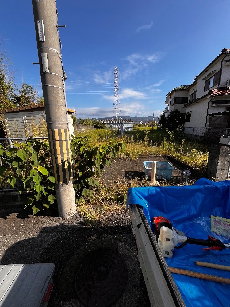 作業前の写真の通り、空き地や敷地の周囲に雑草が伸び放題の状態でしたが、ご覧の通り、見違えるようにスッキリといたしました。