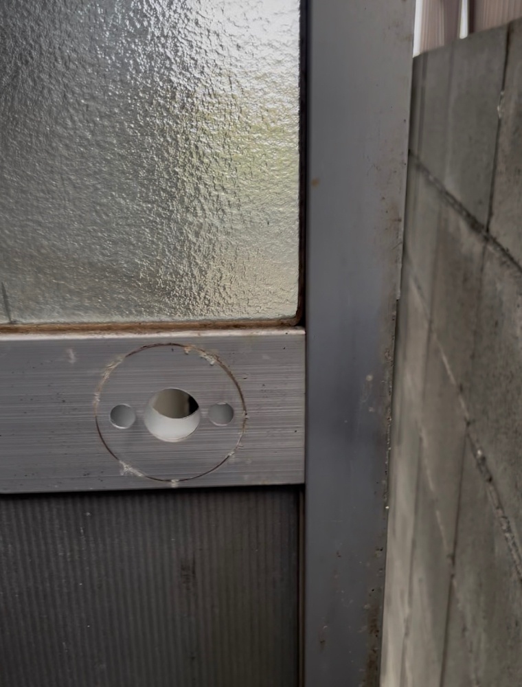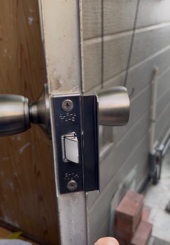 古くなったドアノブを取り外し、新しい部品へ交換しています。