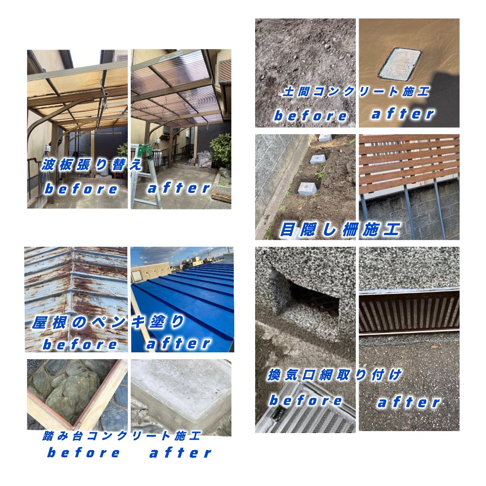 | 波板張り替え | 1枚 3,000円〜 材質・枚数により変動| |