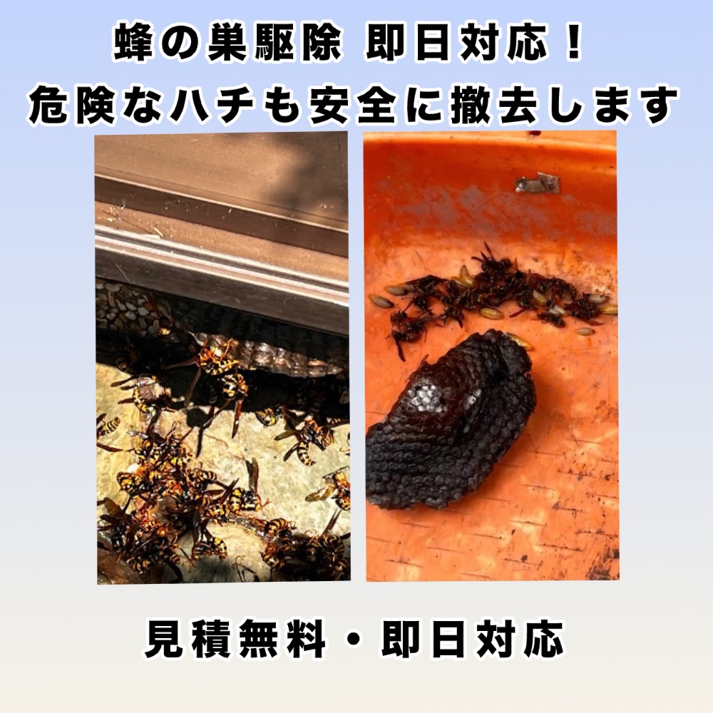 見積もり無料・即日対応可能なので、蜂でお困りの方はお気軽にご相談ください。