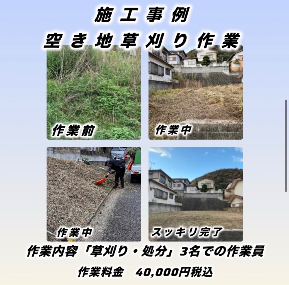 1坪500円〜で、空き地・お庭・駐車場の草刈りに対応しています。